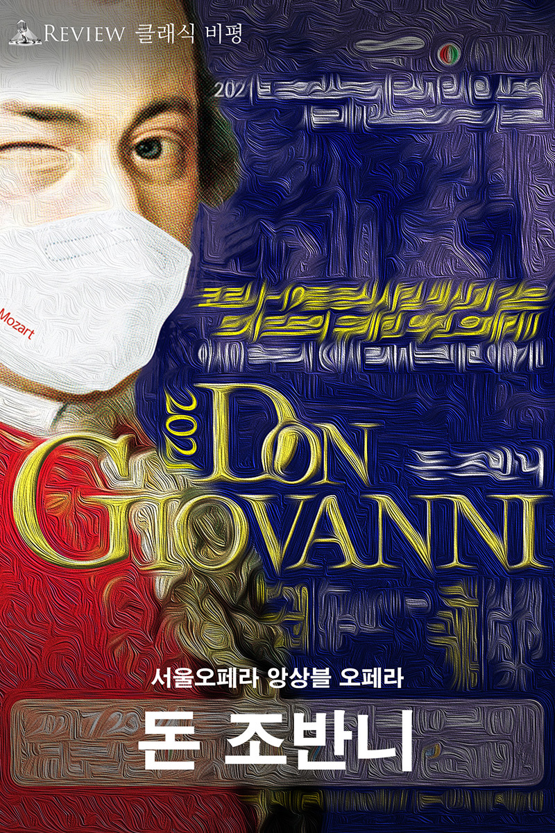 포스터 속의 모차르트는 마스크를 쓰고 있었다. 코로나와 폭염 상황이지만 객석은 거의 만원이었다. 관객들은 돈 조반니의 엽기 행각에 어처구니없어 하면서도 그의 매력을 눈여겨 보았다. 레포렐로의 풍자에 폭소를 터뜨렸고, 돈나 안나의 분노, 돈나 엘비라의 연민, 체를리나의 발칙함에 몰입했고, 돈 오타비오와 마제토에게 동질감을 느꼈다. 연출의 손길이 구석구석 닿아 있기 때문에 이처럼 폭넓은 공감이 가능했을 것이다.