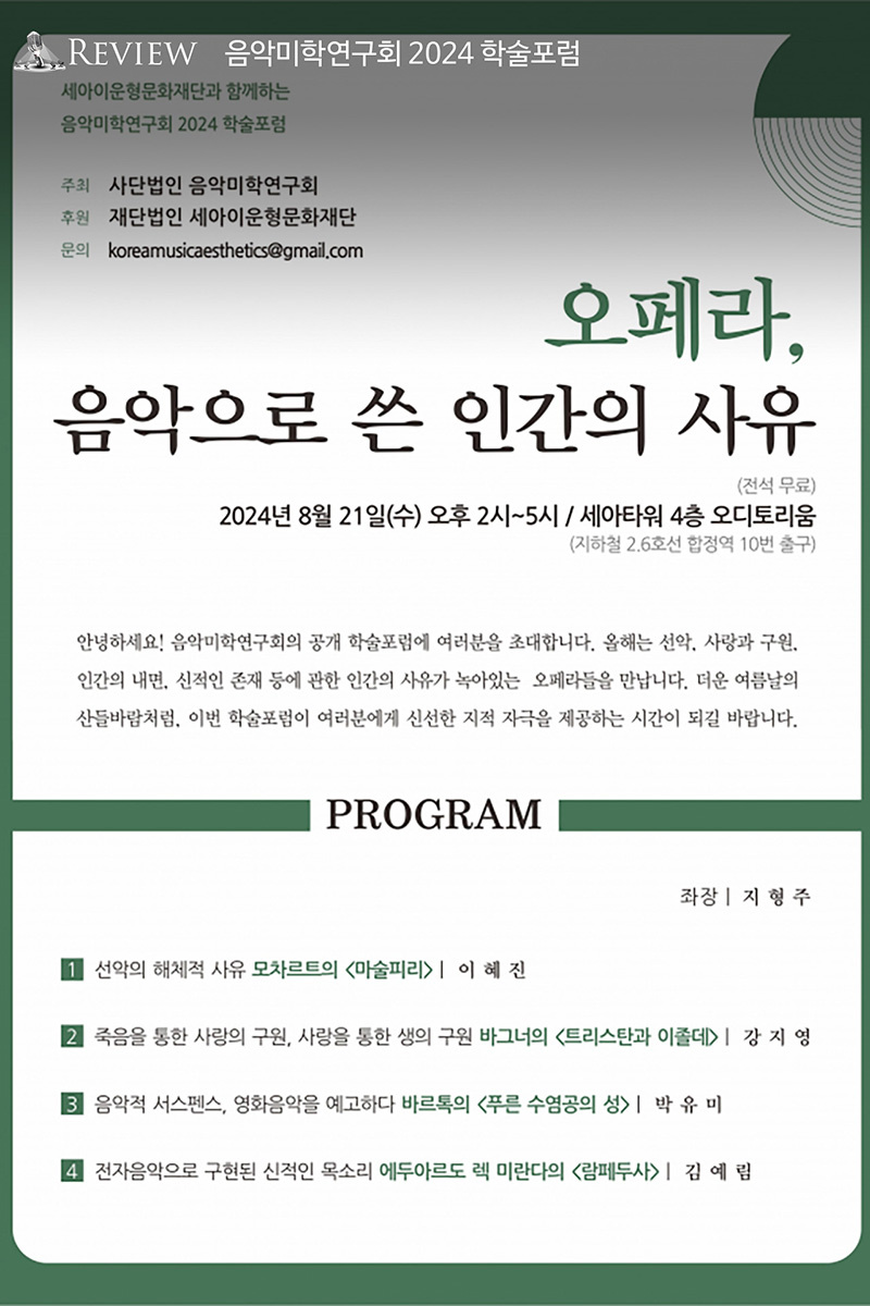 오페라, 음악으로 쓴 인간의 사유/ 음악미학연구회 2024 학술포럼